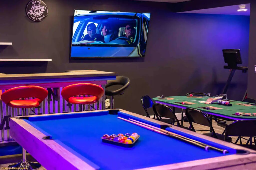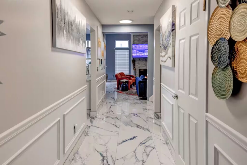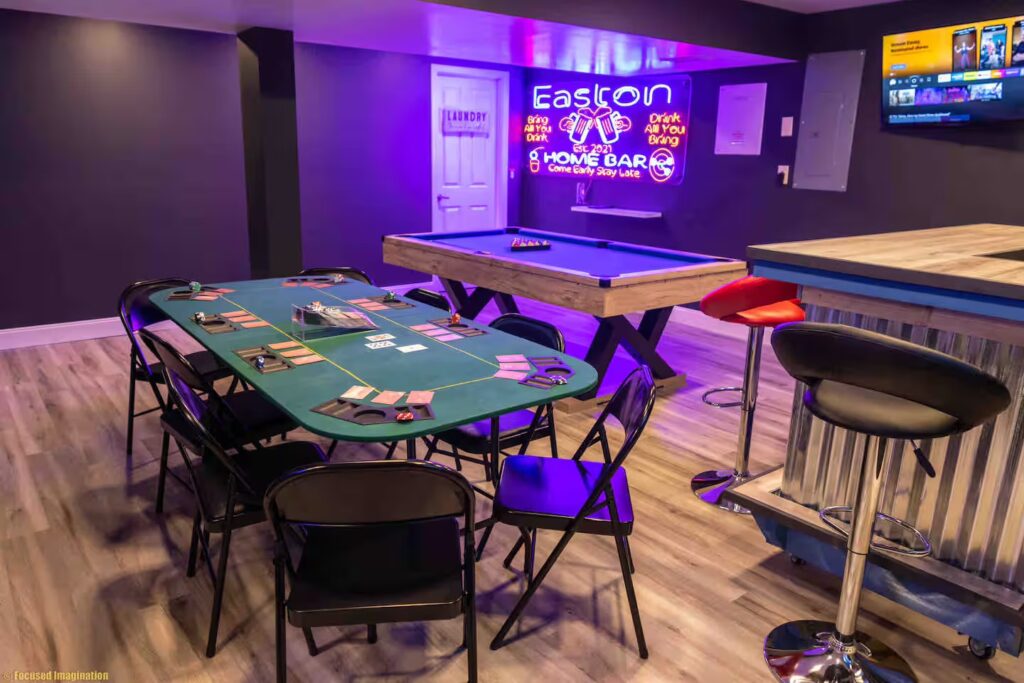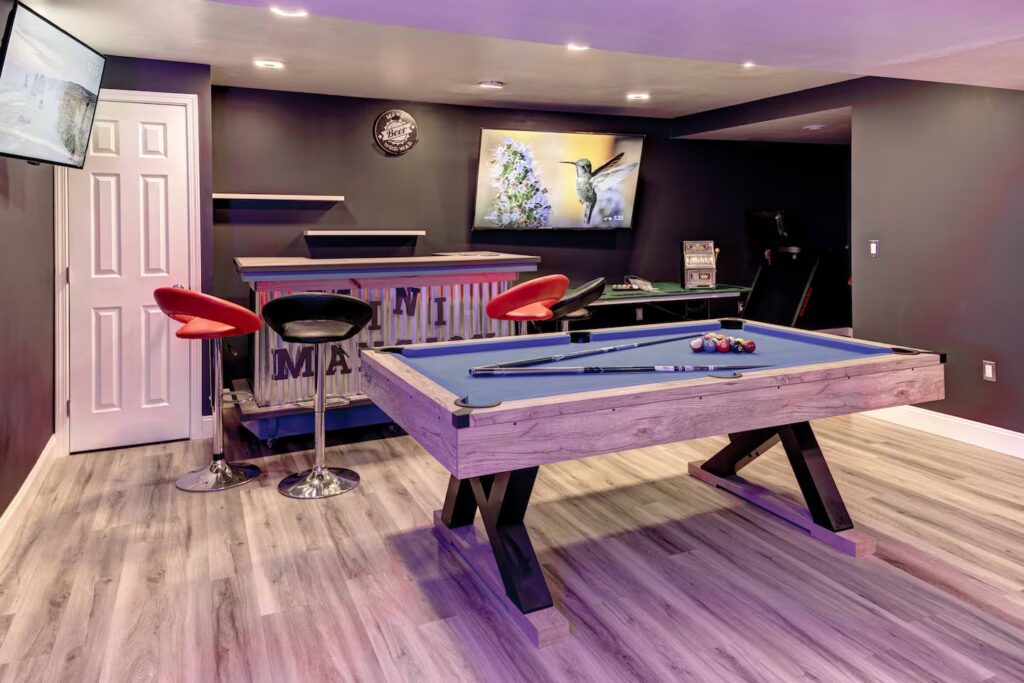 Designed for comfort, privacy & productivity—this 5-level luxury home is perfect for mid-term stays, business housing, relocations & families. Near John Glenn Airport , Easton Towne Center Mall, OSU & Downtown Columbus. Enjoy a private hot tub, sports bar, movie theater , arcade , fast Wi-Fi workspace, chef-ready kitchen & room for 9.