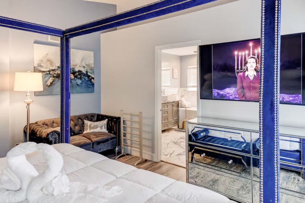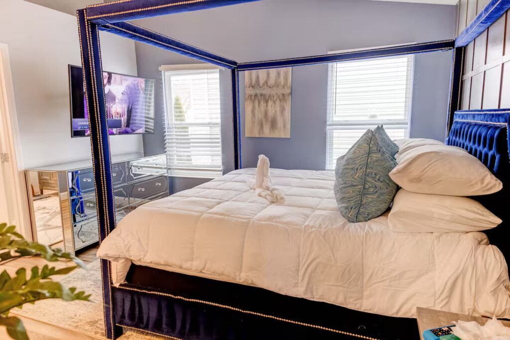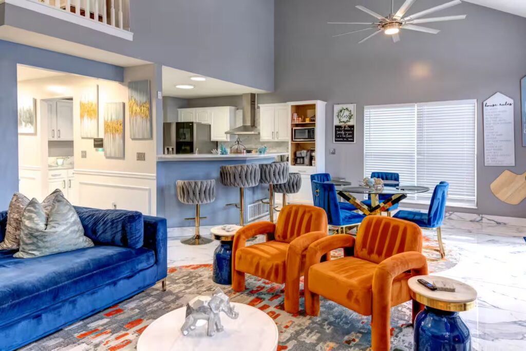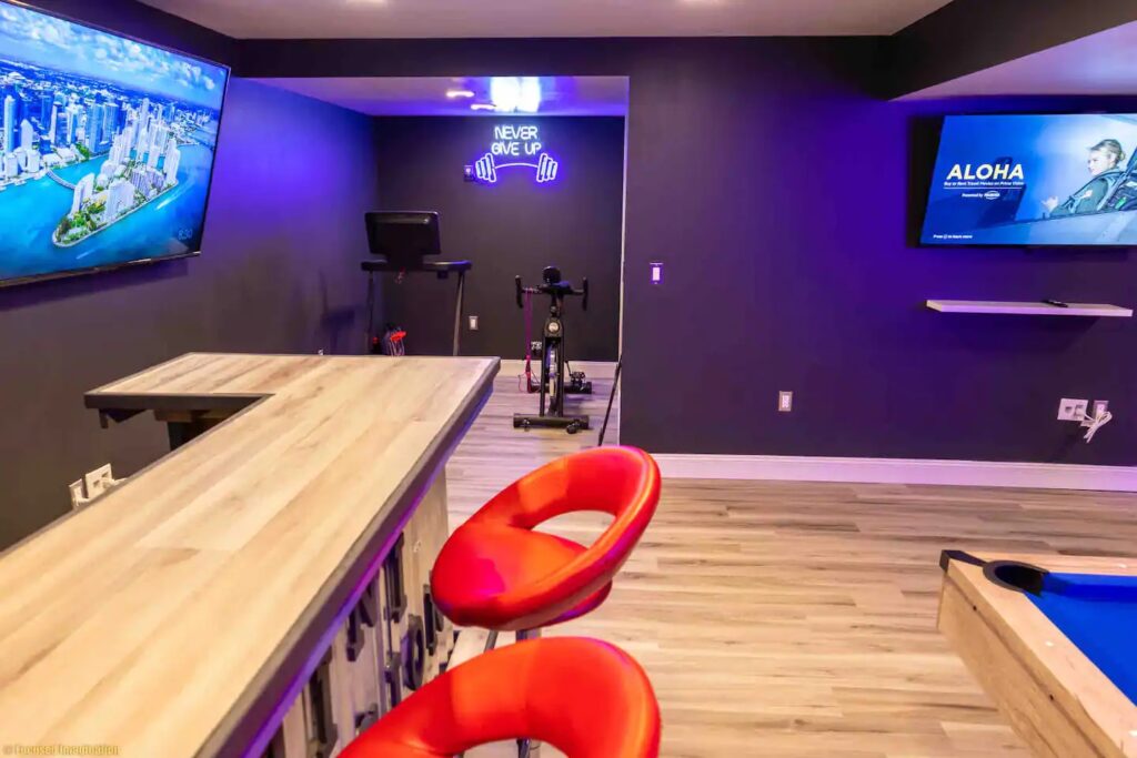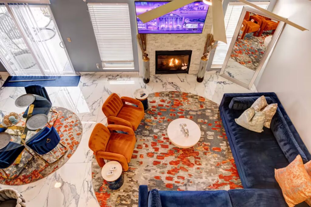 Designed for comfort, privacy & productivity—this 5-level luxury home is perfect for mid-term stays, business housing, relocations & families. Near John Glenn Airport , Easton Towne Center Mall, OSU & Downtown Columbus. Enjoy a private hot tub, sports bar, movie theater , arcade , fast Wi-Fi workspace, chef-ready kitchen & room for 9.
